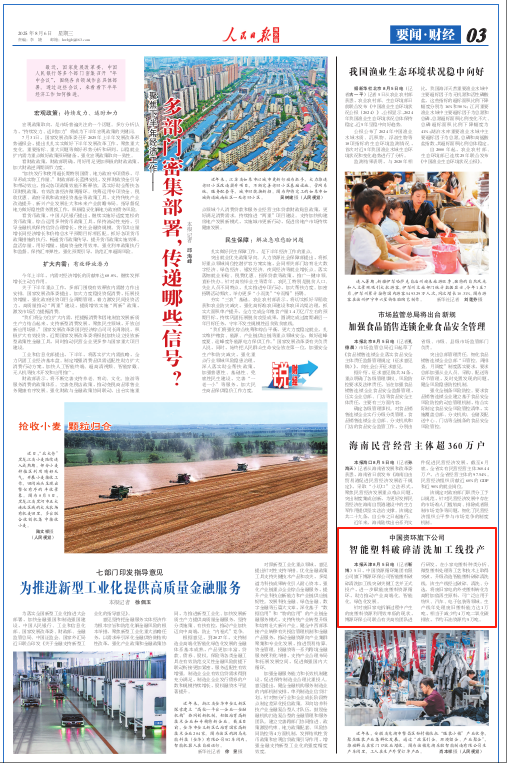 本报天津8月5日电(记者靳博)5日,中国资源循环集团有限公司旗下博源环保公司智能塑料破碎清洗加工线突破关键工艺并正式投产,进一步赋能废塑料资源循环,助力推动产业高端化、智能化、绿色化发展。