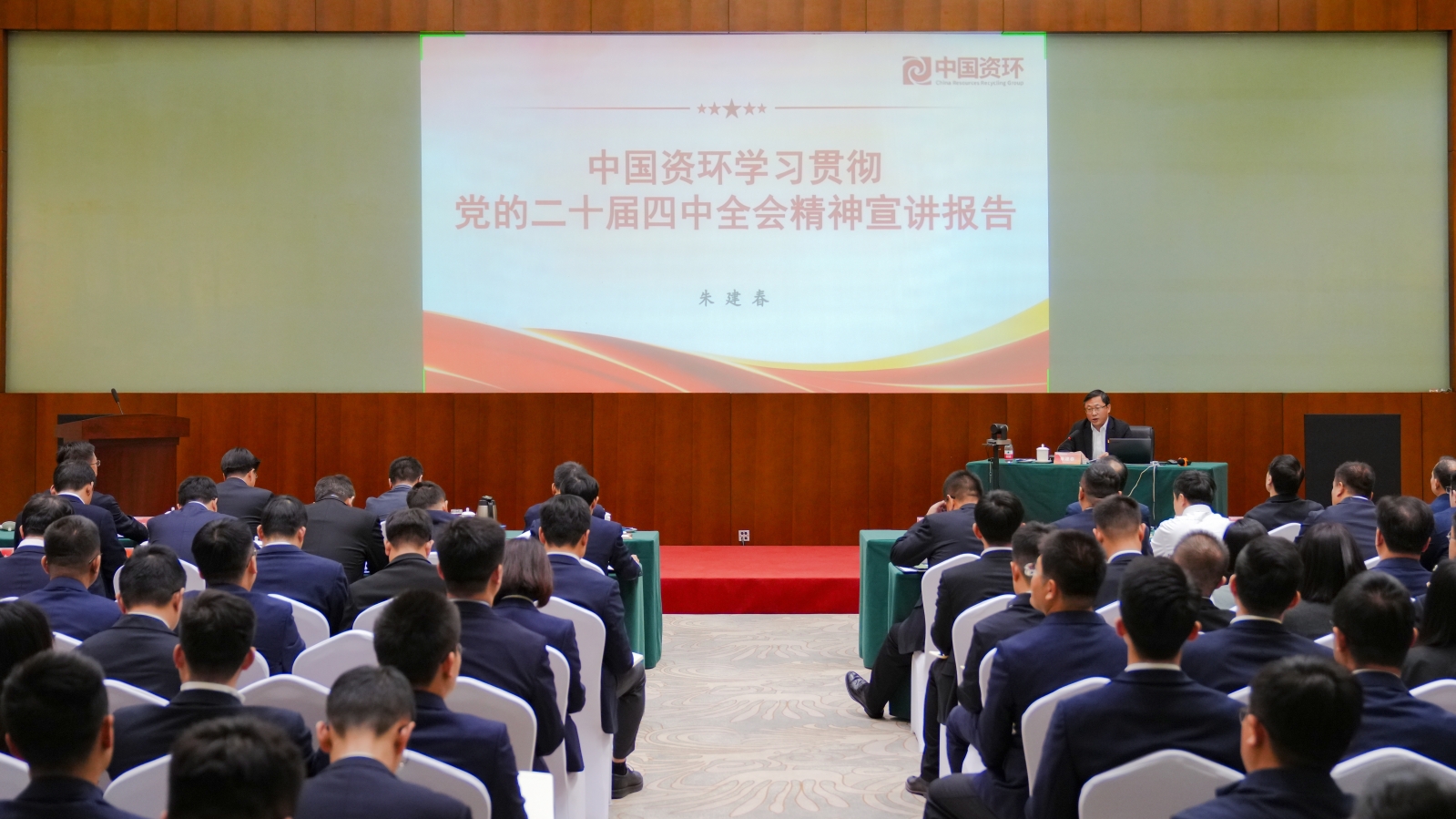 12月1日,中国资环举办学习贯彻党的二十届四中全会精神宣讲报告会,集团党委副书记、董事、总经理朱建春作宣讲报告。集团领导班子成员、总部全体干部职工、直属企业班子成员,朱建春同志所在党支部党员、对口联系点党支部党员等在主会场和视频会场参会。