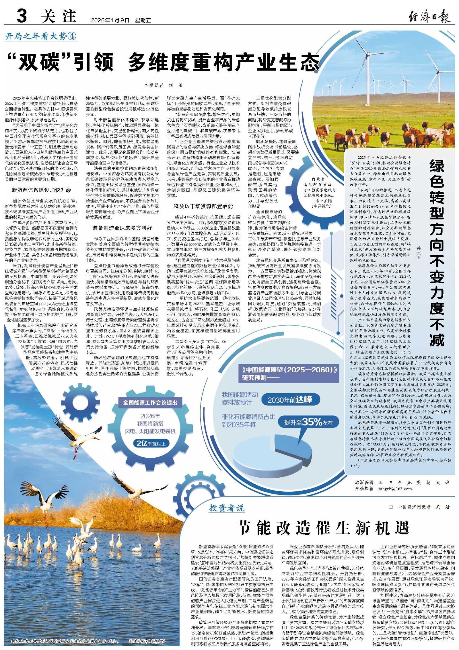 2025年中央经济工作会议明确提出,2026年经济工作要坚持“双碳”引领,推动全面绿色转型。在具体安排中,强调要深入推进重点行业节能降碳改造,加快新型能源体系建设,扩大绿电应用。
