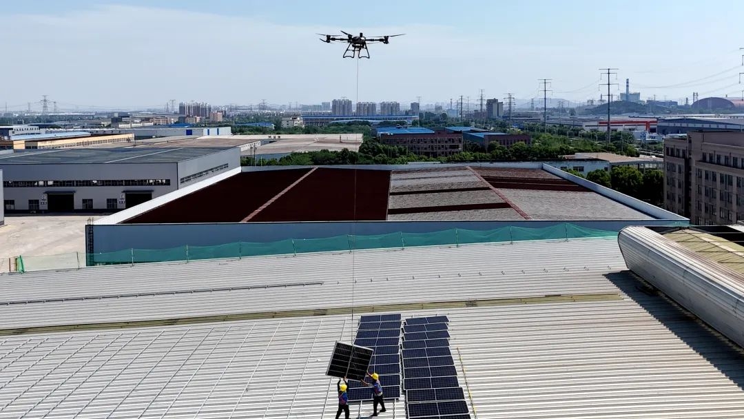 “单架无人机每小时可完成近50块光伏组件的精准吊运安装,施工效率较人工提升超5倍。”日前,在中国资环欧冶链金所属企业马钢利华当涂中心基地,无人机吊运安装光伏组件的场景成为一道独特风景,该项目负责人介绍,数架搭载光伏组件的无人机穿梭于17000平方米的厂房屋顶,推动1.5MW屋顶分布式光伏电站项目建设步入“快车道”。
