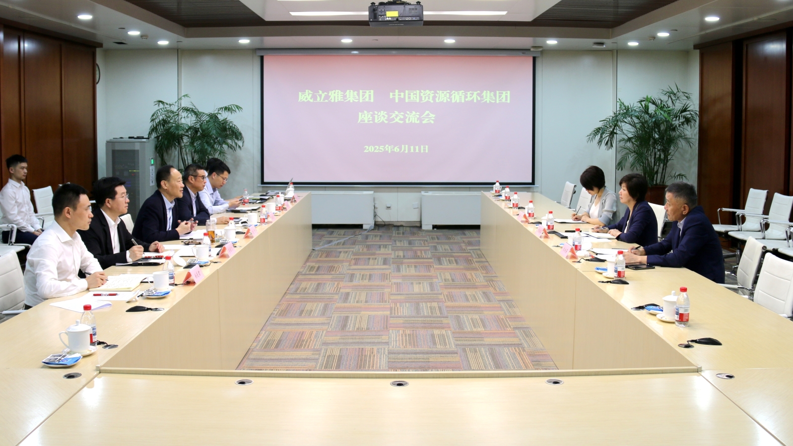 刘宇对顾丽华一行到访表示欢迎,介绍了集团战略定位、产业布局和展业拓市情况。他表示,中国资环组建以来,始终牢记“发展循环经济、建设美丽中国”的使命,聚焦国家战略需要,坚持循环利用、变废为宝,强化科技创新、管理创新和商业模式创新,加快展业兴业,加快打造全国性、功能性资源回收再利用平台。威立雅集团作为全球生态转型的领军者,在可再生能源、资源回收、减少消耗等领域拥有丰富经验和技术积累,希望双方加强战略协同,不断拓展合作深度和广度,积极助力中国实现“双碳”目标,为实现可持续发展贡献力量。