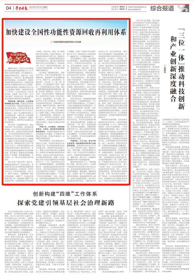 10月15日出版的《学习时报》刊发中国资环党委署名文章《加快建设全国性功能性资源回收再利用体系》,现为您全文分享。