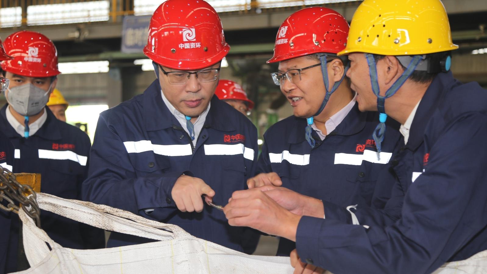 朱建春深入生产一线察看了资环电子博源环保、资环链金湖北公司生产厂房、加工产线、园区及配套设施等区域,深入了解安全环保工作进展,并听取了业务发展布局与生产经营等相关工作情况汇报。就下一阶段工作,朱建春强调,一是加强安全体系管理,落实全员安全生产责任。要提高政治站位,深入学习贯彻习近平总书记关于安全生产的指示精神,落实 “雷霆行动” 部署和 “三管三必须” 要求,提升现场作业标准化水平,常抓安全教育培训,提升本质安全水平;二是锚定战略发展目标,推动高水平协同发展。要紧扣集团战略,立足自身优势,对标世界一流,精准谋划“十五五”发展规划,明晰战略定位与实施路径,强化各业务板块协同,为保障国家资源安全贡献力量;三是打造核心竞争力,引领高质量发展。要聚焦产业高端化、智能化、绿色化发展方向,坚持科技创新、管理创新与商业模式创新,推进原料端精细拆解和输出端高值利用,总结形成可复制可推广的“中国资环”方案。